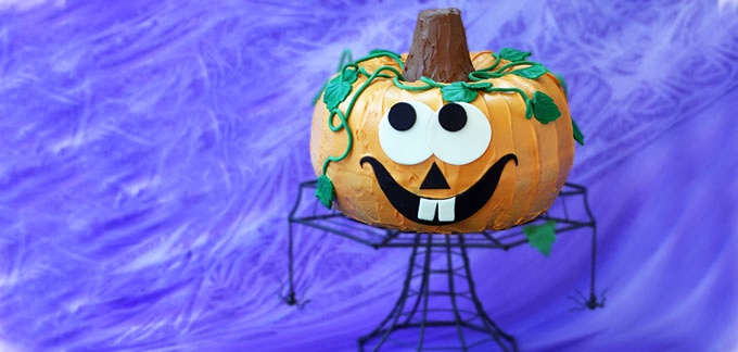 Приготовьте домашний торт по фирменному рецепту, обмажьте его кремом для торта любого цвета, на котором будет отчётливо видна белоснежная паутина и черный устрашающий паучишка.